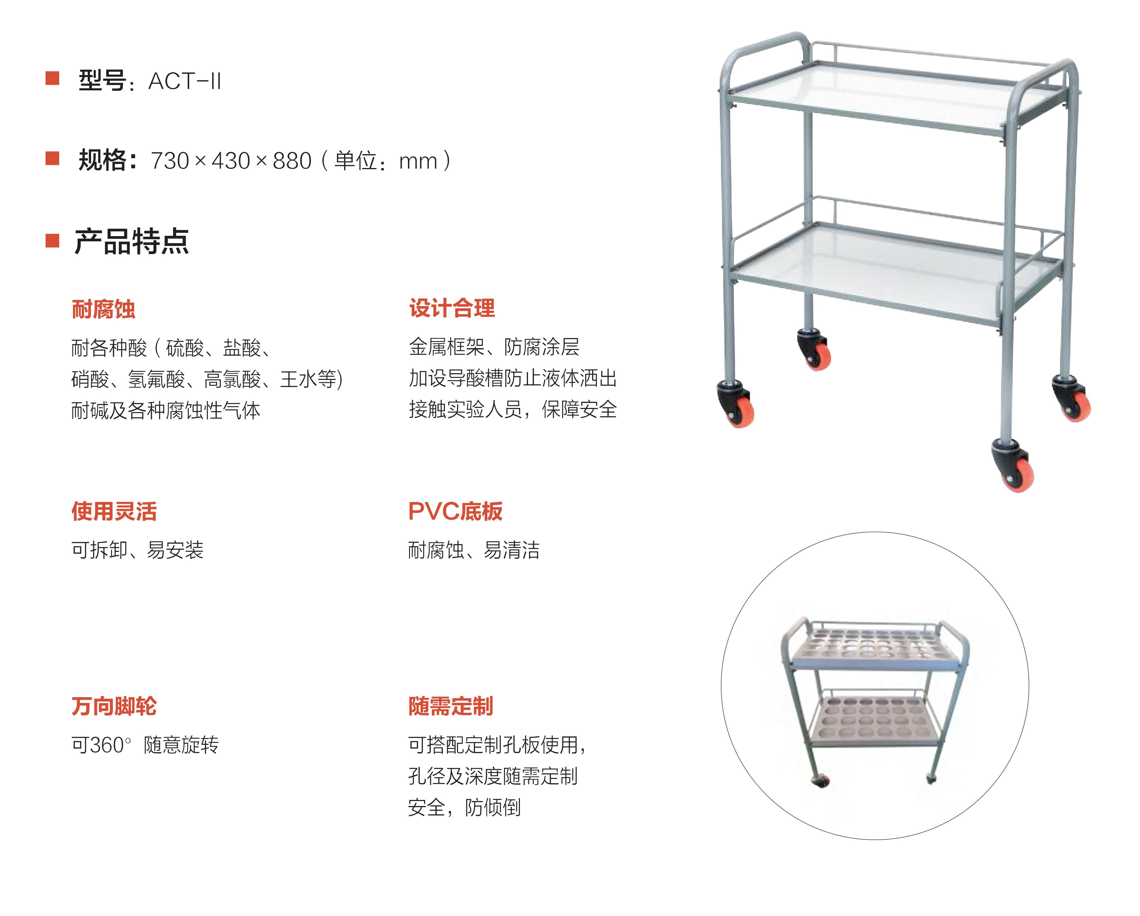 耐各种酸(硫酸、盐酸硝酸、氢氟酸、高氯酸、王水等)耐碱及各种腐蚀性气体,可拆卸、易安装,可360°随意旋转,金属框架、防腐涂层加设导酸槽防止液体洒出接触实验人员,保障安全,PVC底板耐腐蚀、易清洁。随需定制,可搭配定制孔板使用,孔径及深度随需定制安全,防倾倒。