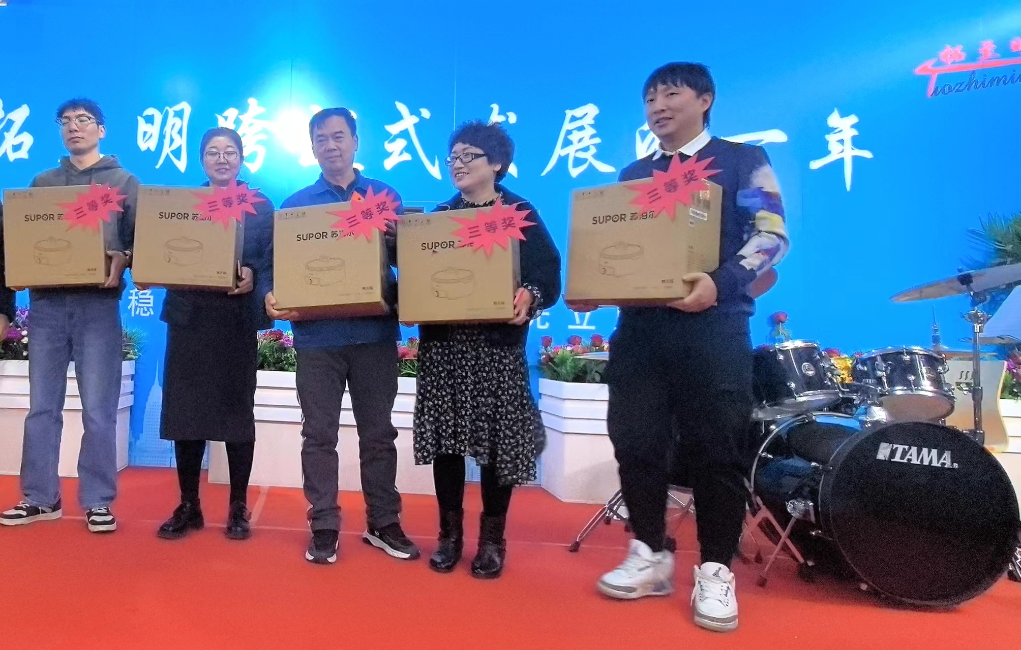 现场奖品不间断,大家也在游戏中团结协作,一起尽情释放压力,台下一片欢声笑语。尤其是最后抽奖环节设置的一等奖,最终由车间优秀员工获得,果然努力的人最幸运!